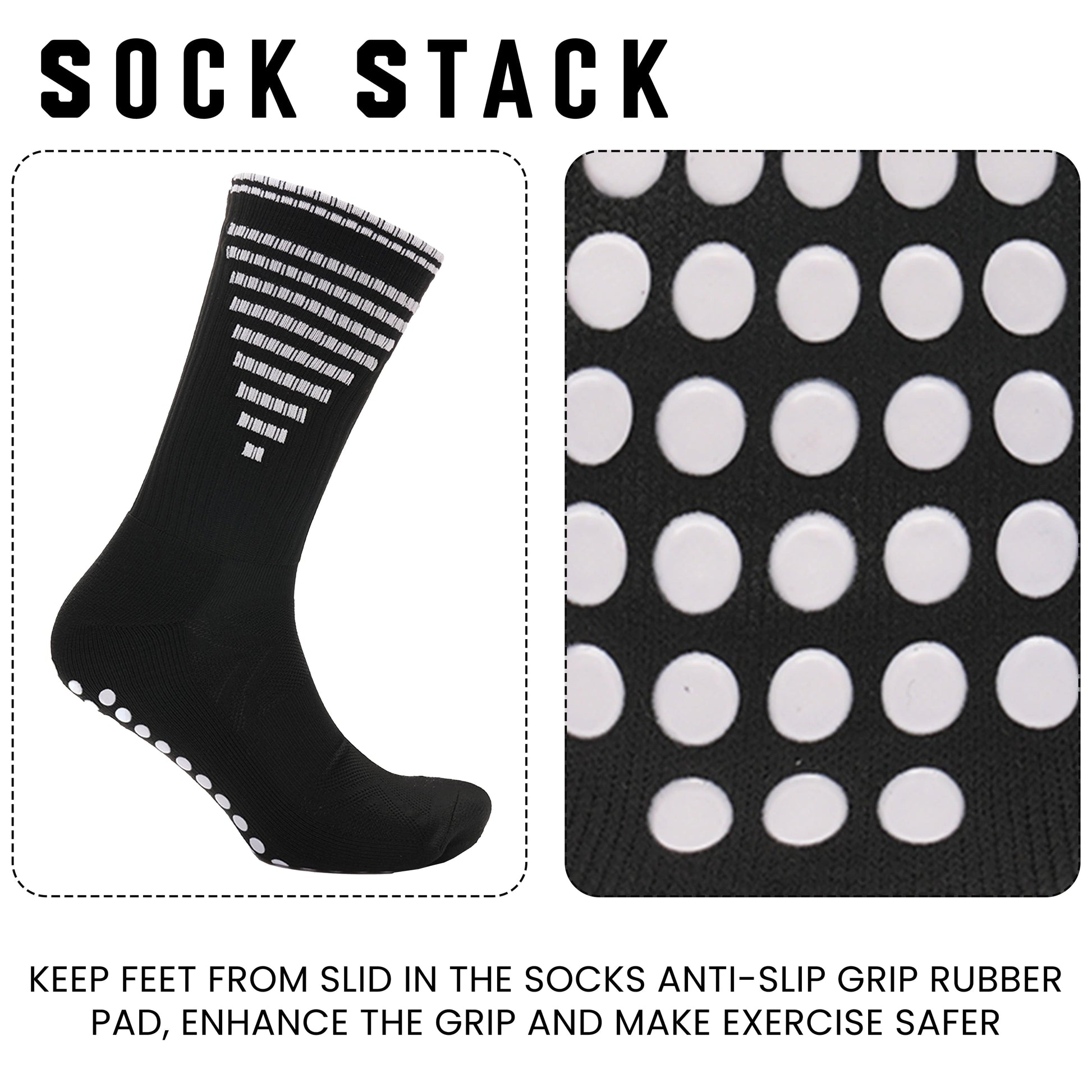 Warranty and Support: Backed by our satisfaction guarantee, we offer dedicated customer support and a flexible return policy to ensure your complete peace of mind. Elevate your sports performance with Sock Stack's 3 Pairs Black Anti Slip Football Grip Socks. Order now and experience the difference in your game!