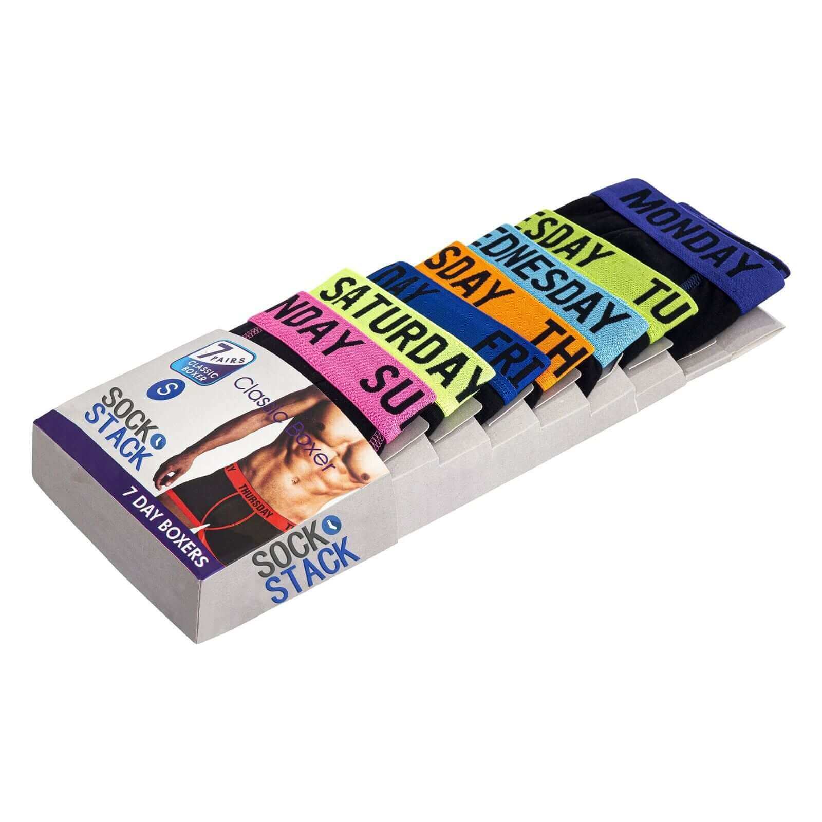 With countless options in the underwear market, the 7 Pack Days Of The Week Men's Comfort Fit Boxer Shorts by Sock Stack stands apart. Customers praise the all-day comfort, reliable fit, and stylish design—making these men's boxershorts a top-rated choice. The perfect combination of premium materials, smart sizing, and the exclusive "days of the week" feature delivers unbeatable value. Choose this pack to enjoy trusted quality, everyday performance, and a modern look that supports your lifestyle.