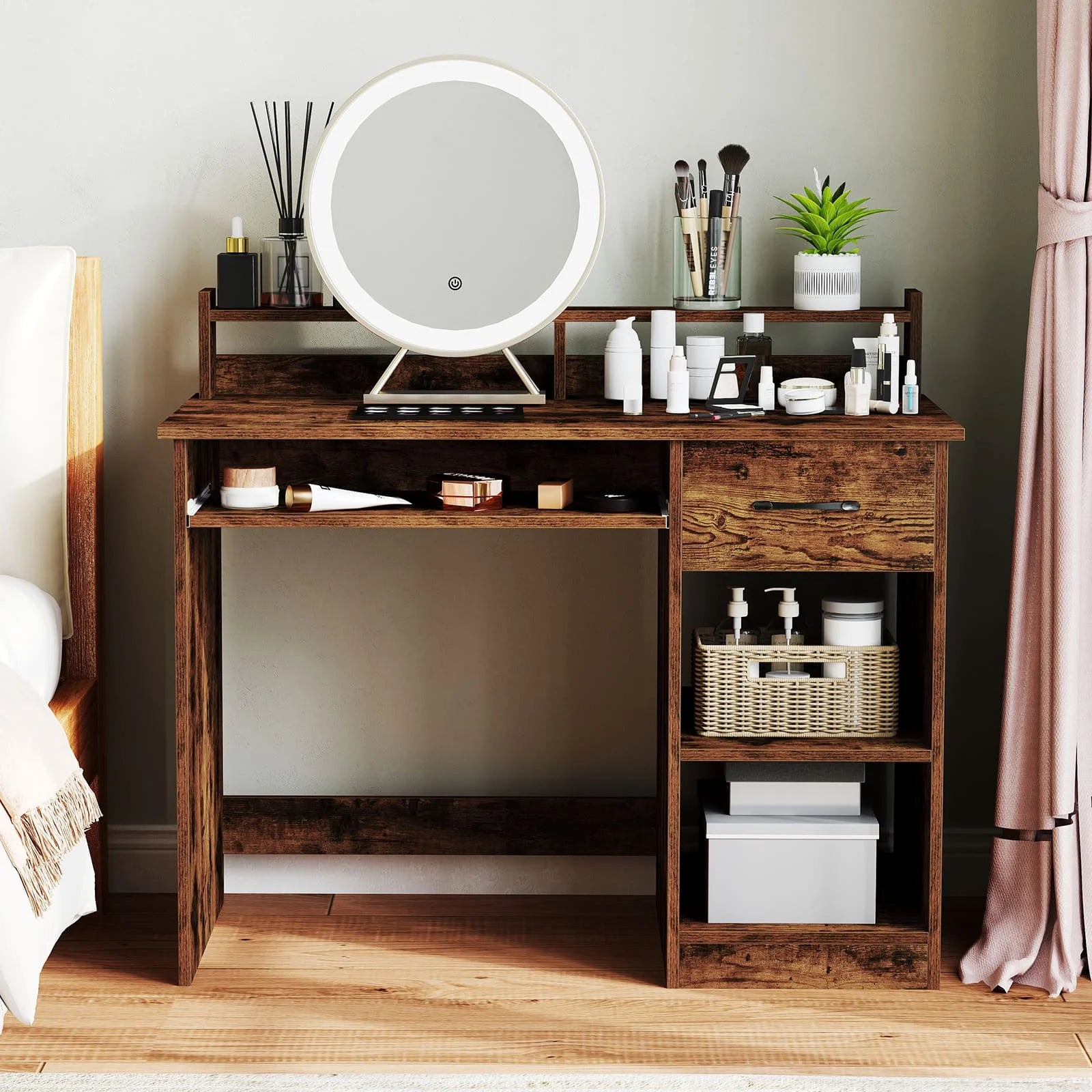 The open compartment features a 5-position adjustable shelf, and you can even directly remove the shelf to put a computer host. With these storage areas, the desk can also be a study desk, vanity desk and workstation in study, bedroom and office.