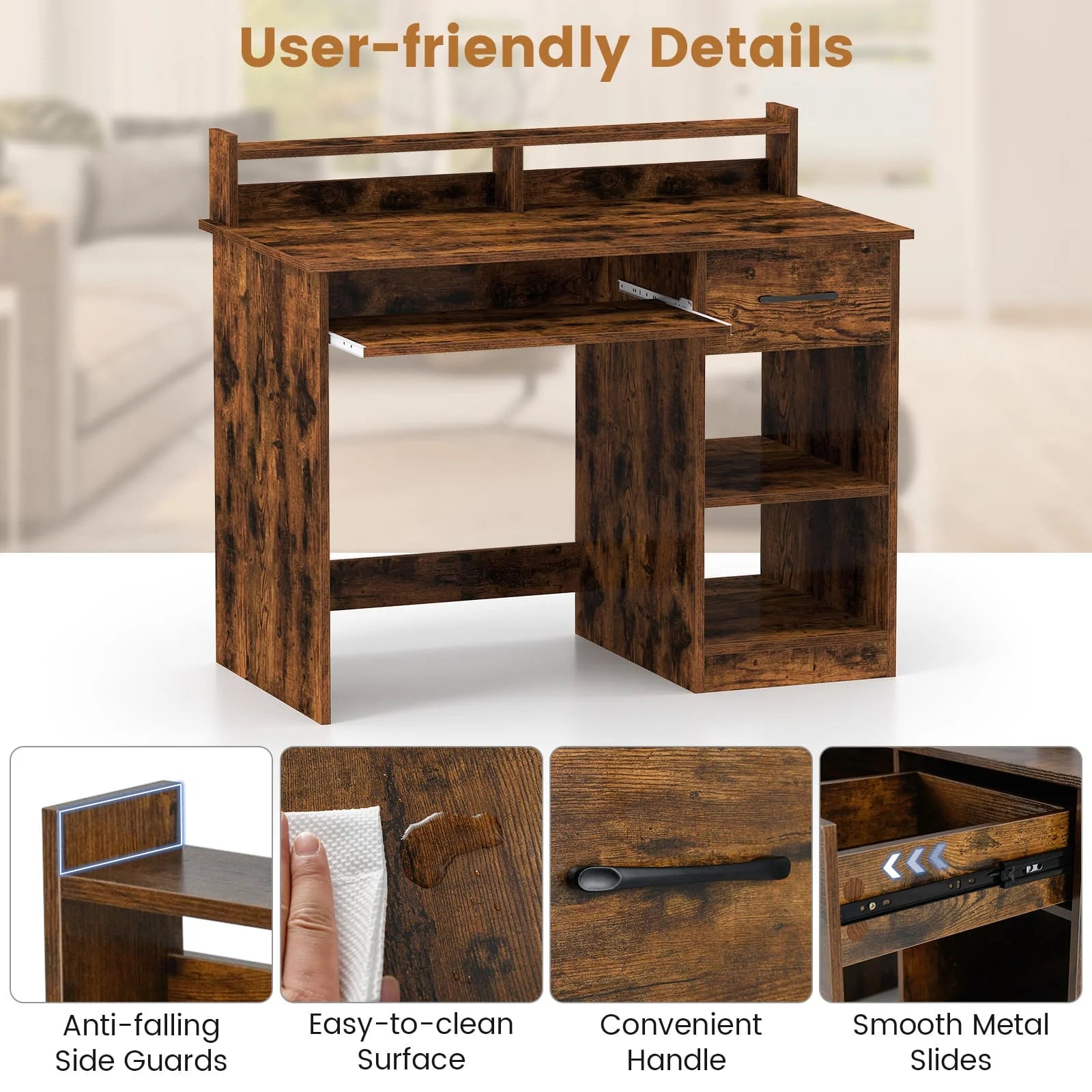 High-quality MDF effectively makes the writing desk sturdier, which shows in the entire weight capacity of about 134kg, and greatly extends the whole service life. Meanwhile, it is equipped with diverse storage areas. You can get spacious working environment with 105 x 55cm desktop, save space with the pull-out keyboard tray and store essential documents in deep drawer.