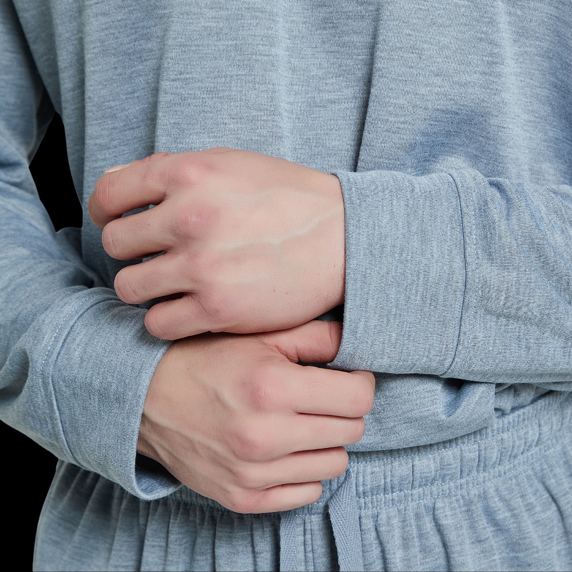 Crafted with 100% polyester compact-Siro spinning Technology, our luxurious men's pyjama set offers unparalleled comfort. The soft brushed grey fabric with Siro Spinning Technology ensures superior softness and breathability, guaranteeing a cosy night's sleep.