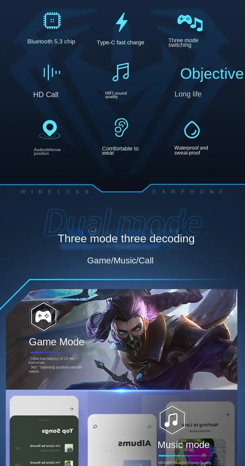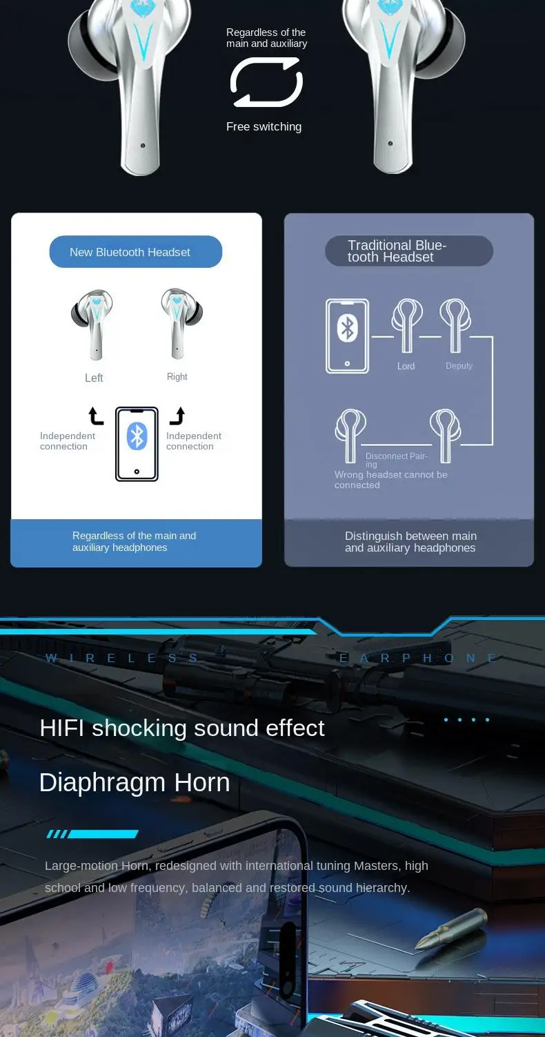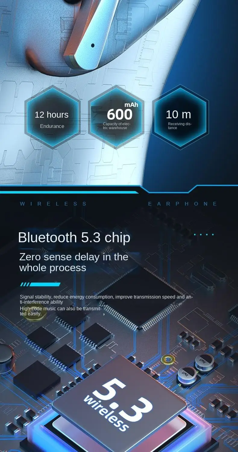 Premium Wireless Gaming Earphones 5.3 Low Latency