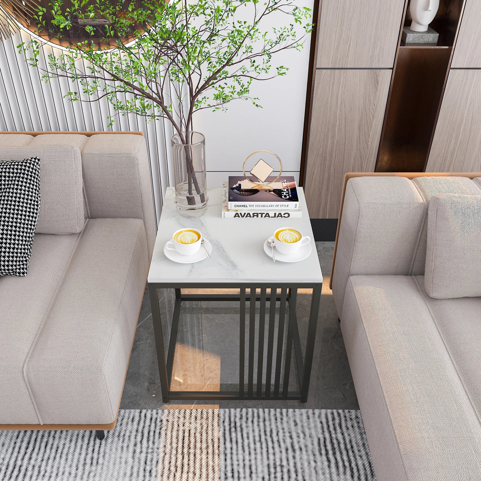 Design with clean lines, this modern end table is an ideal addition to your home, the elegant tabletop with marble texture gives a luxury touch while ensuring stability, and the solid structure gives this table a great weight capacity of up to 66 lbs, easily holding your daily items.