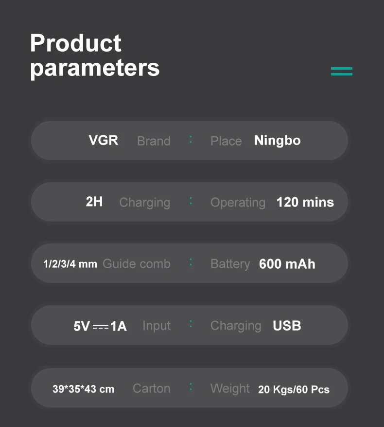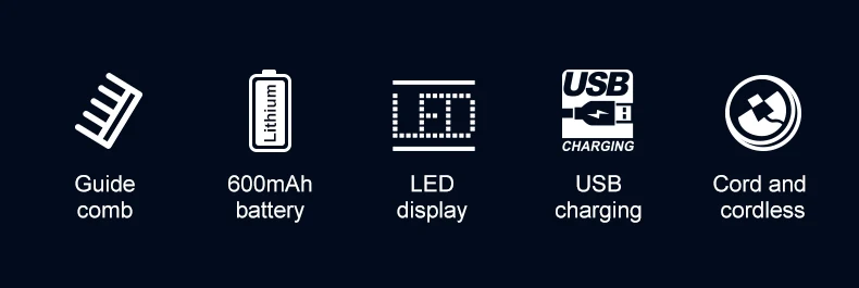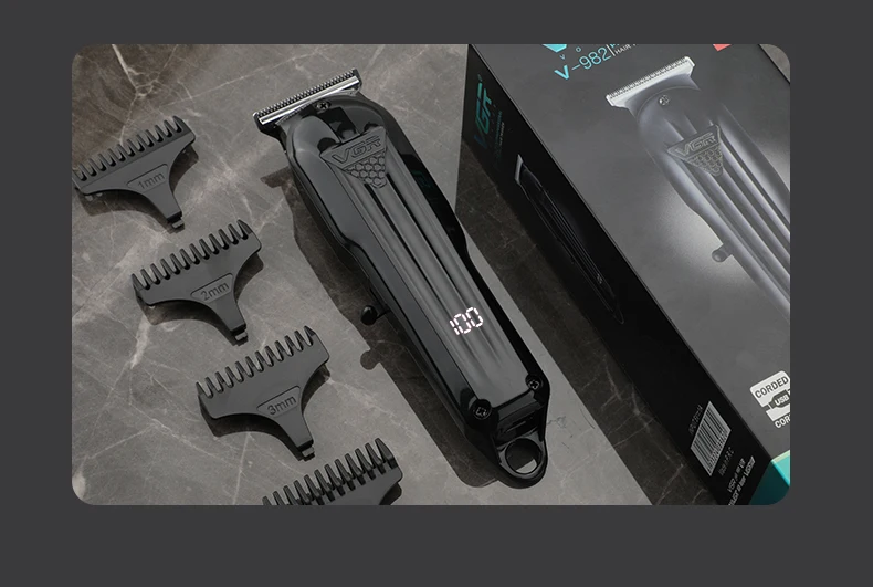 This premium hair trimmer V982 provides everything you need for a perfect haircut, including four cutting guide combs (1/2/3/4mm), a USB charging cable, a cleaning brush, and a protective cap. Say goodbye to tangled cords and enjoy cordless freedom with our best-seller, perfect for home or on the go!