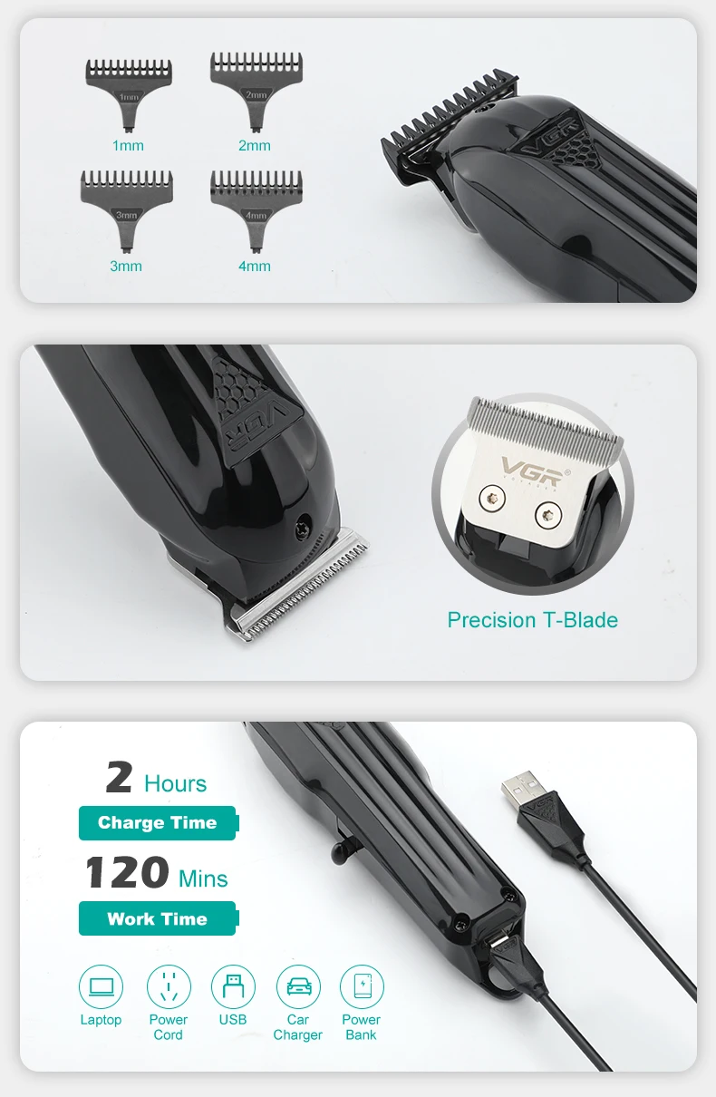 VGR Cordless Hair Trimmer - Pro Precision Cut